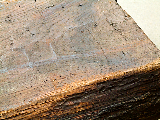 Weniger häufig fanden Vollhölzer Verwendung. Zur Herstellung von Halb-und Viertelhölzern wurde die Schottsäge eingesetzt. Die auch heute noch erkennbaren Sägespuren verraten den z.T. enormen Vorschub. Die Strecke, die von Sägezug zu Sägezug zurückgelegt wurde, beträgt vielfach 1 cm und mehr. Dieses Maß des Vorschubs kann bei trockenem Holz niemals erzielt werden. Auch Beilhiebe geben über den Zustand des Holzes zum Zeitpunkt seiner Bearbeitung Auskunft. Der Beil-oder Dexelhieb hinterlässt auf der Holzoberfläche eine ziemlich glatte Fläche, wogegen bei trockenem Holz Absplitterungen und Abfaserungen zu sehen sind.