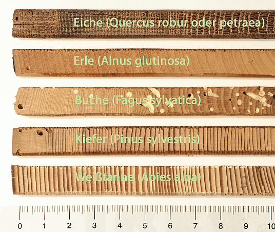In Mitteleuropa überwiegen vier Baumarten in der Verwendung als Bauholz: Eiche, Fichte, Tanne und Kiefer. Zwei davon zeigen in ihren Strukturen dunkle Kern-und hellere Splintholzanteile. Das trifft auf Eiche und Kiefer zu. Bei Fichte und Tanne dagegen ist der Spintholzanteil vom Kernholzanteil nicht zu unterscheiden.