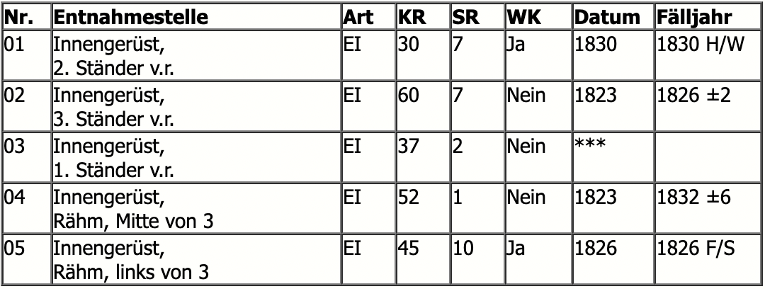 Ergebnisse der dendrochronologischen Altersbestimmung